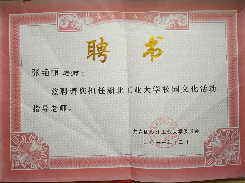 | 2011年 | 湖北工业大学学生活动指导教师 |