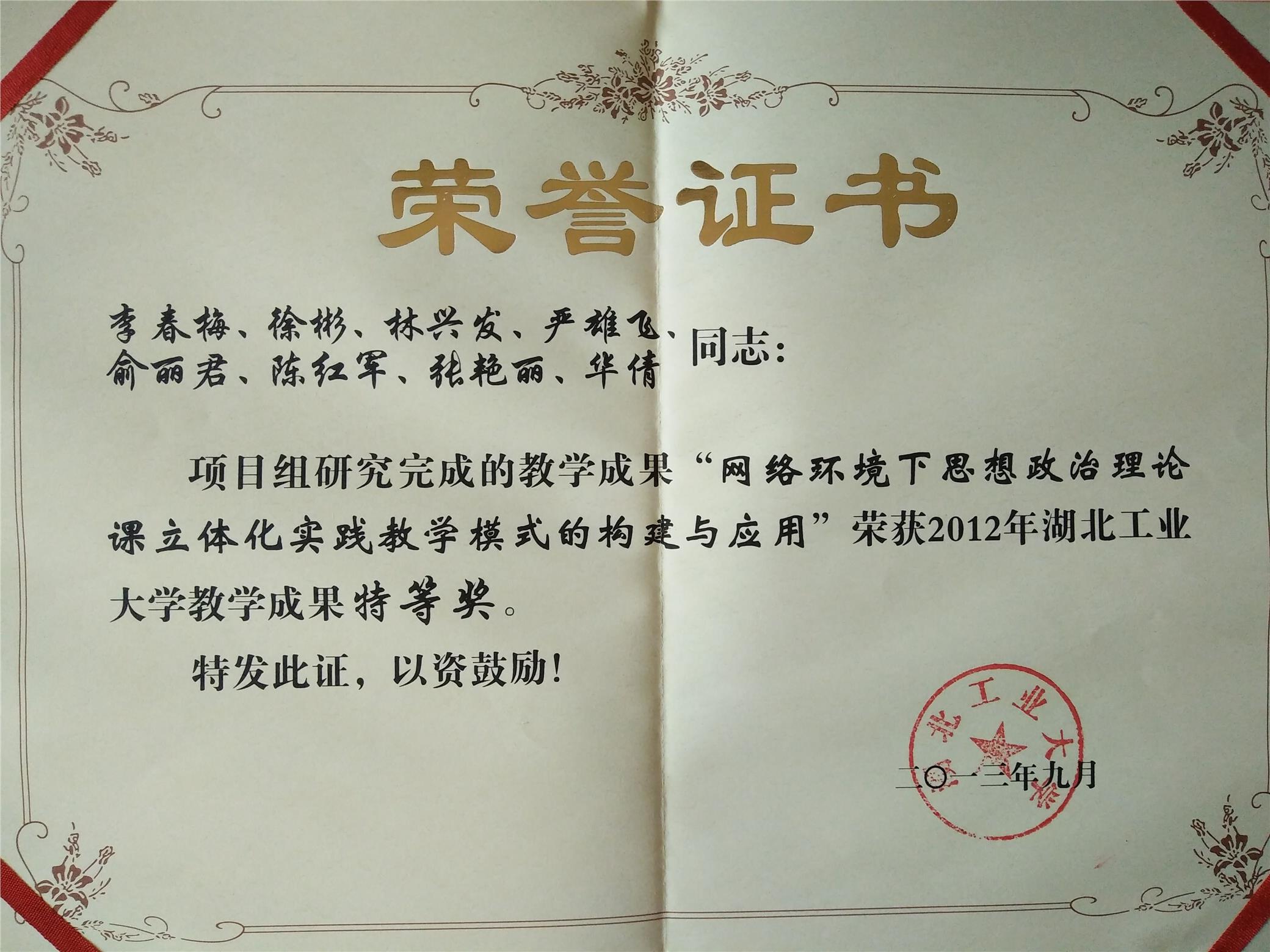 | 2012年 | 湖北工业大学教学成果特等奖 |