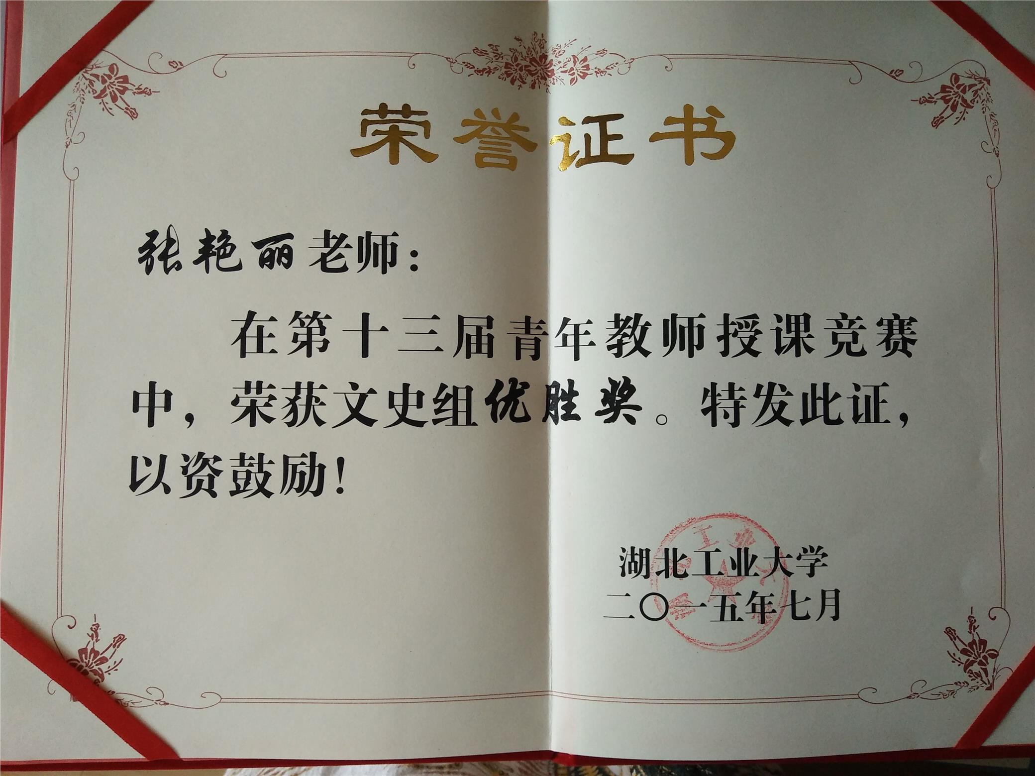 | 2015年 | 湖北工业大学青年教师授课竞赛文史组优胜奖 |