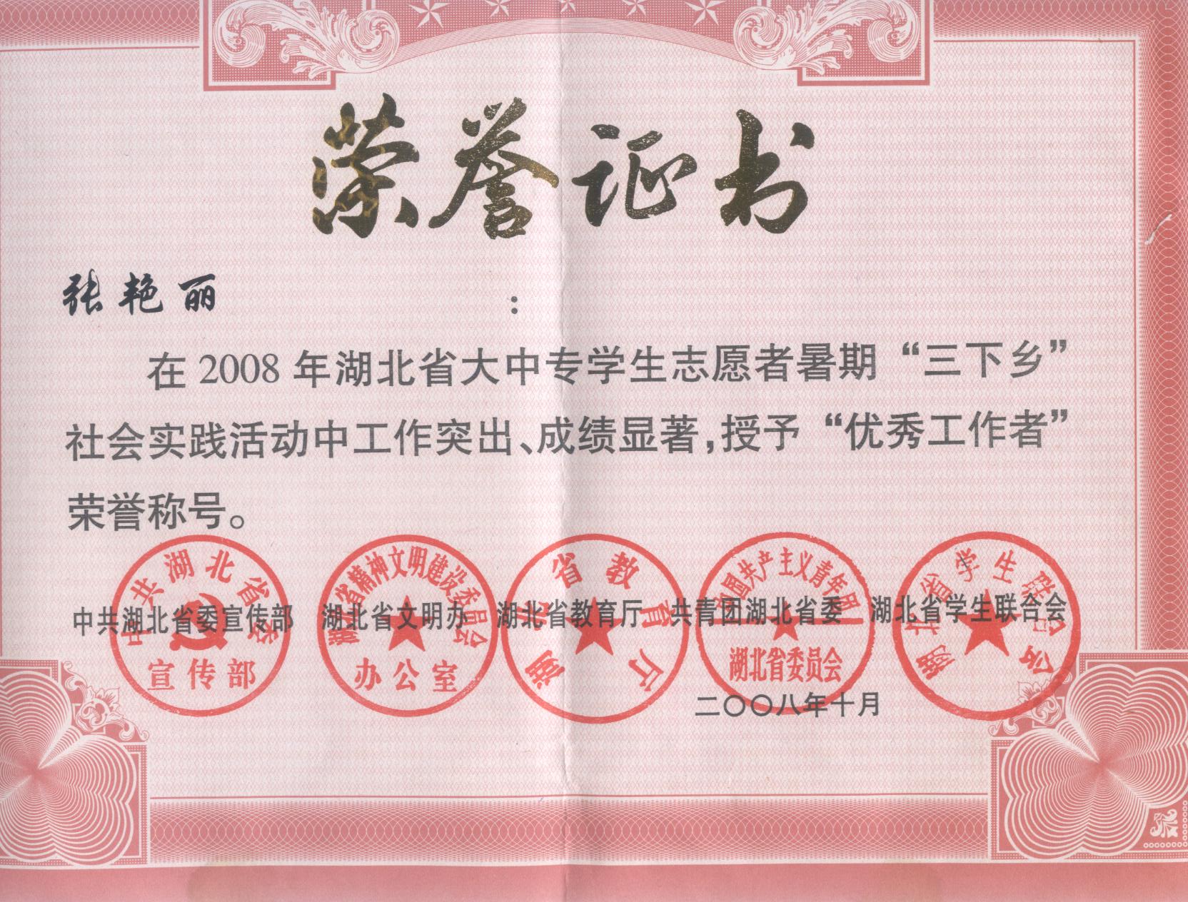 | 2008年 | 湖北省暑期社会实践优秀工作者 |
